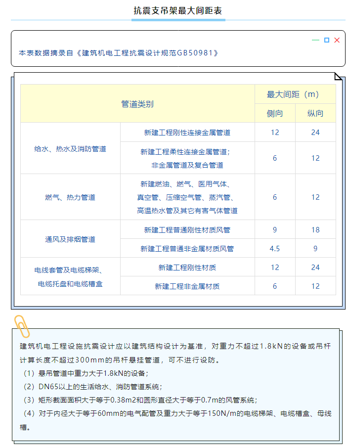 抗震支吊架最大间距表
